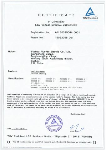 015年11月13日我司901系列干湿两用吸尘器获得CB、CE、GS证书。